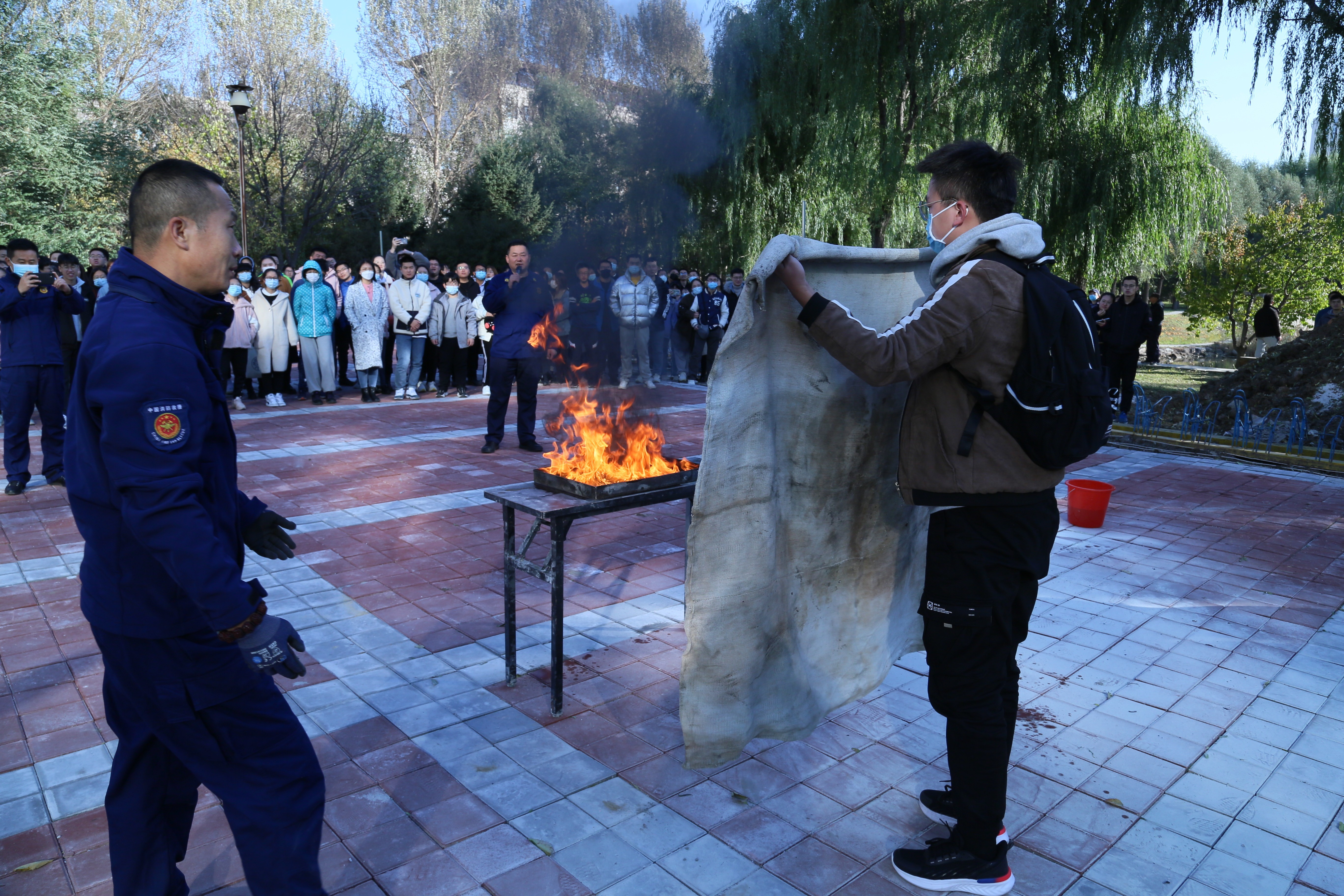 在消防器材使用培训环节,保卫处消防科董立明老师详细讲解并演示了干粉灭火器、二氧化碳灭火器、灭火毯、防烟防火面罩等消防器材的使用方法。在保卫处老师的指导下,30余人次学生参与消防器材的使用学习。