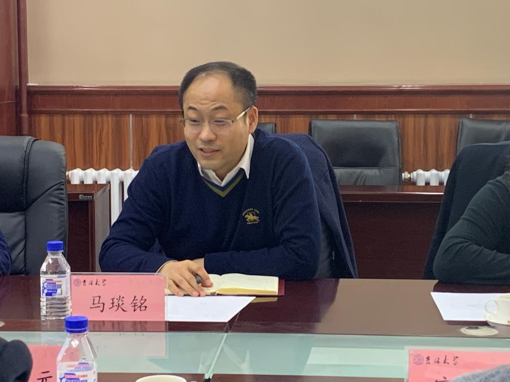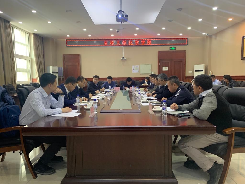 院长吕中元主持。吕中元从学院概况、队伍建设、人才培养、科学研究、社会服务等方面介绍了化学一流学科建设情况,并着重汇报了学院“十四五”事业发展规划情况;学院党委书记宁德宽汇报了学院党委基本情况、党史学习教育开展情况;与会人员结合学院发展存在的困难与问题从资源配置、人才引进、学生培养、实验室建设、科研平台建设等多方面进行深入交流与讨论。