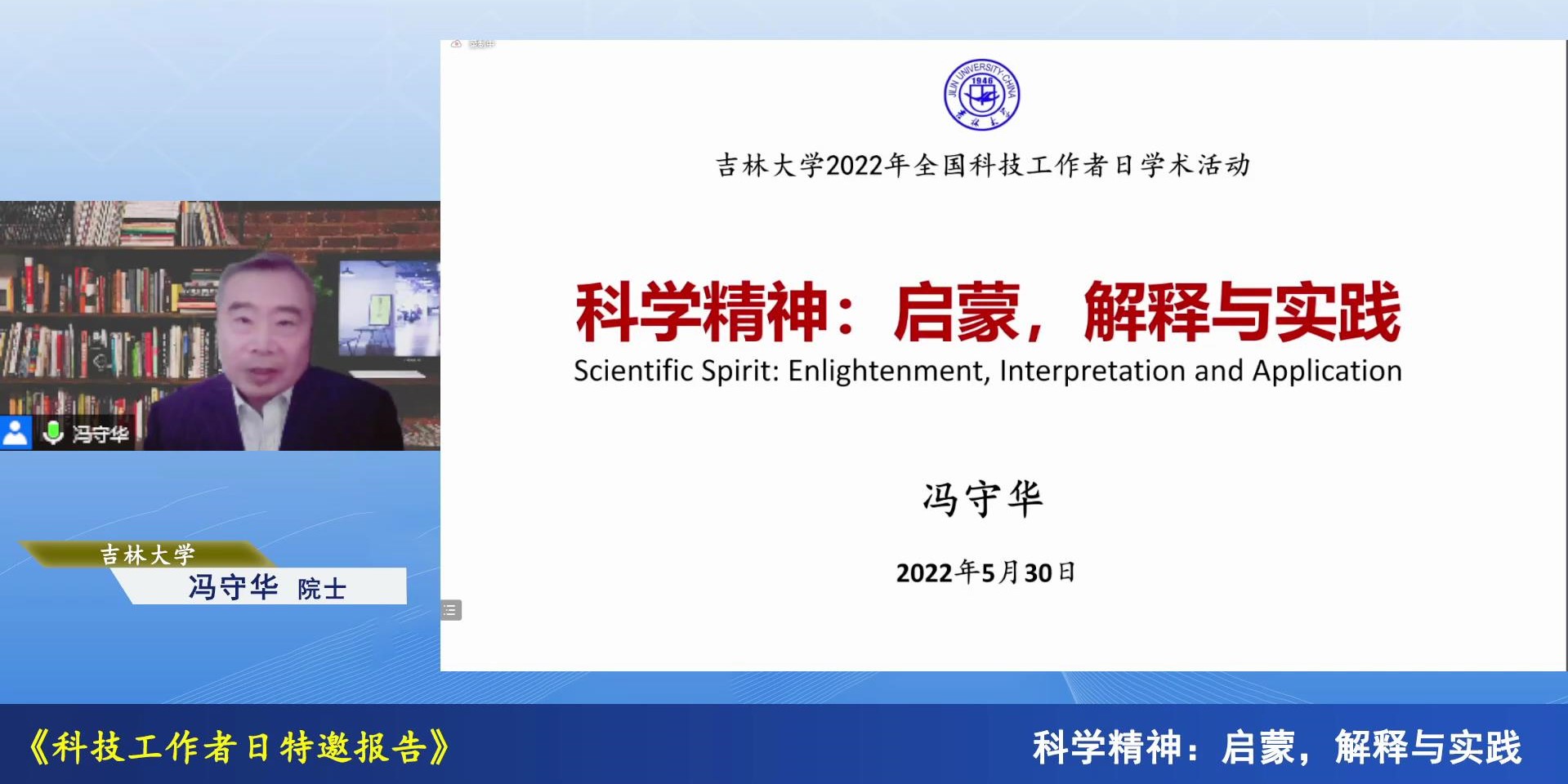 【消息来源:科研院 科协秘书处】5月30日,在第六个“全国科技工作者日”来临之际,吉林大学举办“科学精神”院士专题报告会。中国科学院院士、校长张希出席并主持报告会。中国科学院院士、校学术委员会主任冯守华以“科学精神:启蒙、解释与实践”为题作专题报告。