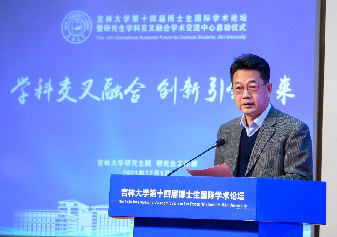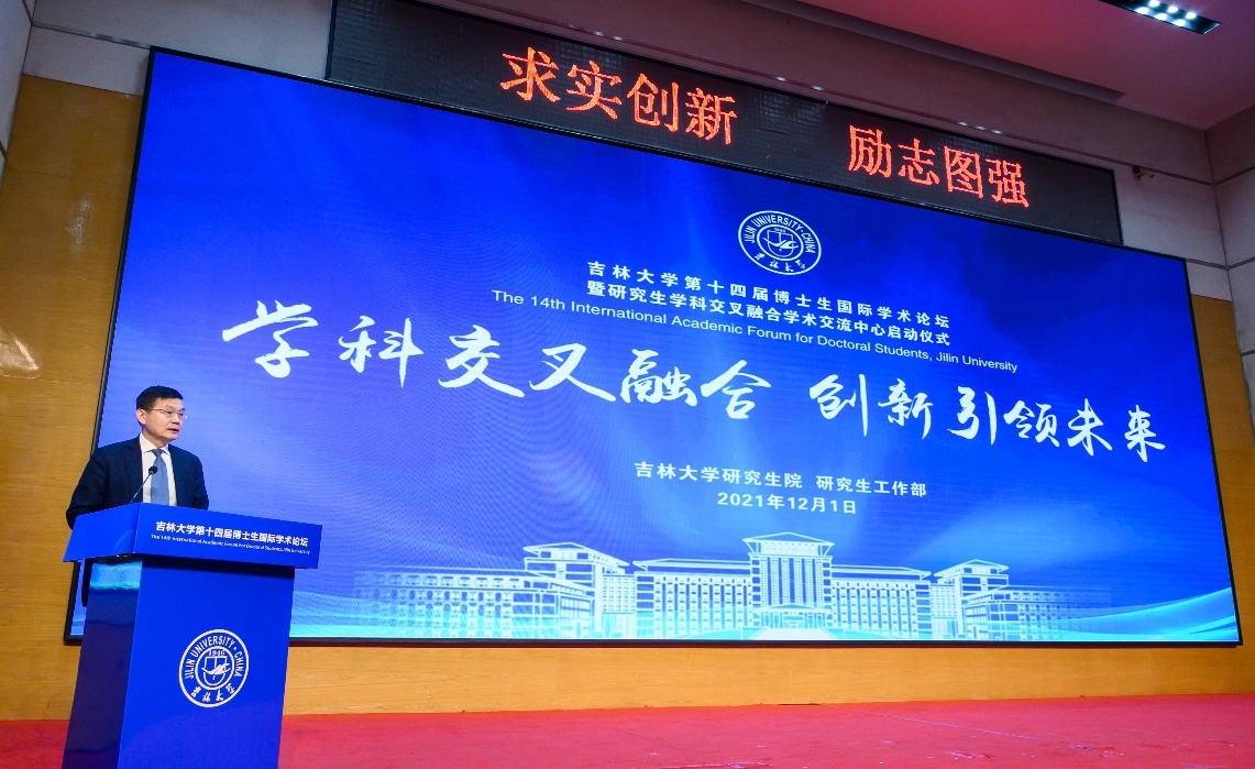 第十四届博士生国际学术论坛开幕式暨研究生学科交叉融合学术交流中心启动仪式于12月1日上午在东荣报告厅举行。中国科学院院士、吉林大学校长张希,吉林省科学技术协会党组成员、副主席、吉林农业大学副校长杜锐教授,中国科学院院士任露泉教授,中国科学院院士于吉红教授,中国工程院院士林君教授,哲学社会科学资深教授张福贵,吉林大学常务副校长郑伟涛、副校长王玉柱等出席开幕式。