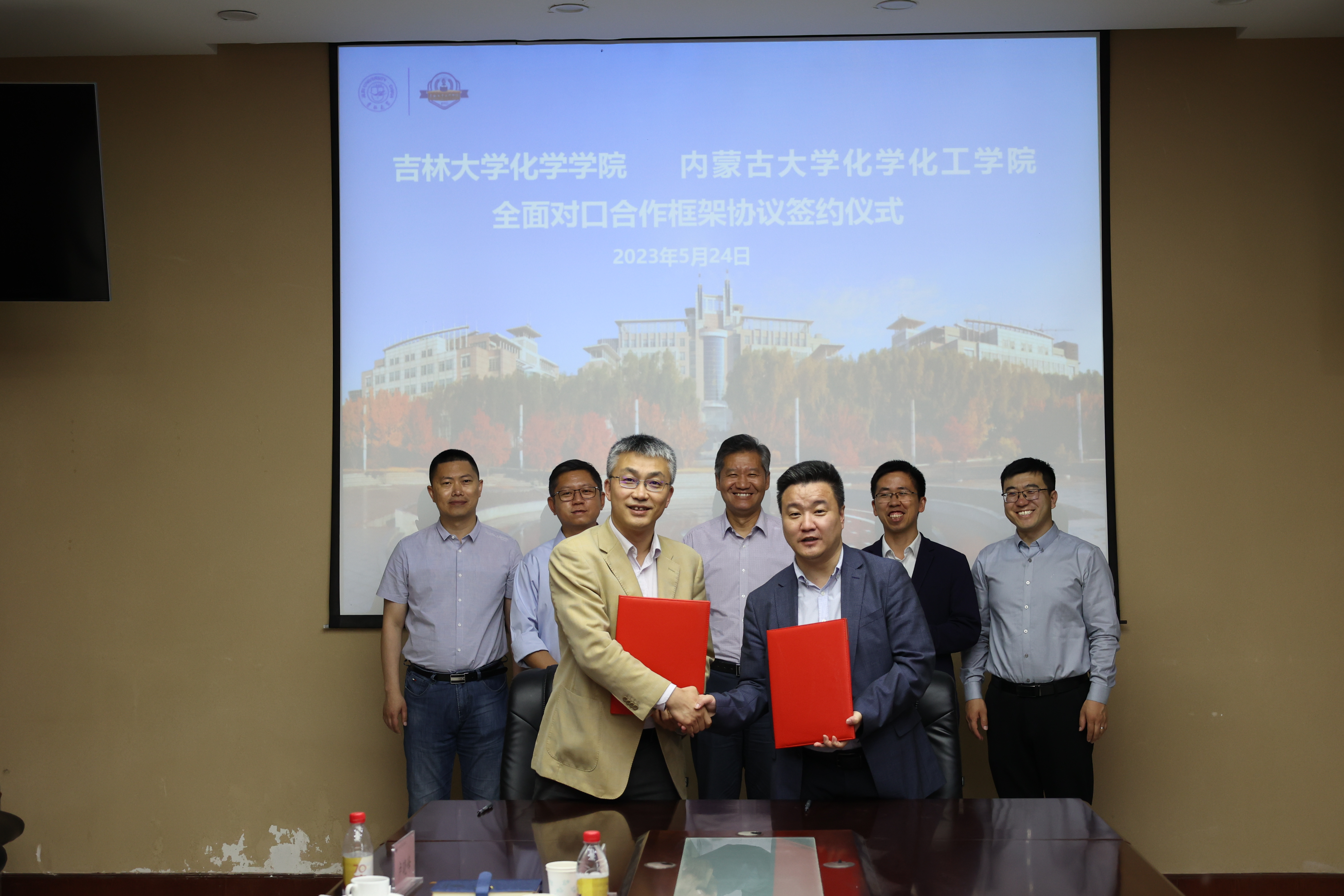 党委书记宁德宽、院长吕中元、副院长刘堃、副院长李乙、院长助理卢晓峰,内蒙古大学化学化工学院院长刘健、副院长褚海斌、副院长王建国出席会议。