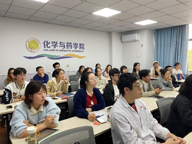 副院长李乙教授从学院概况、人才培养、大师引领、顶尖平台、优质课程、出国深造、就业指导和学生们关注的研究生生活、奖助体系、招生政策等方面,为学生们进行详细的介绍,充分展示吉林大学化学学科优势及专业特色。宣讲会上老师为学生们答疑解惑并进行政策解读,师生进行了热烈的互动。