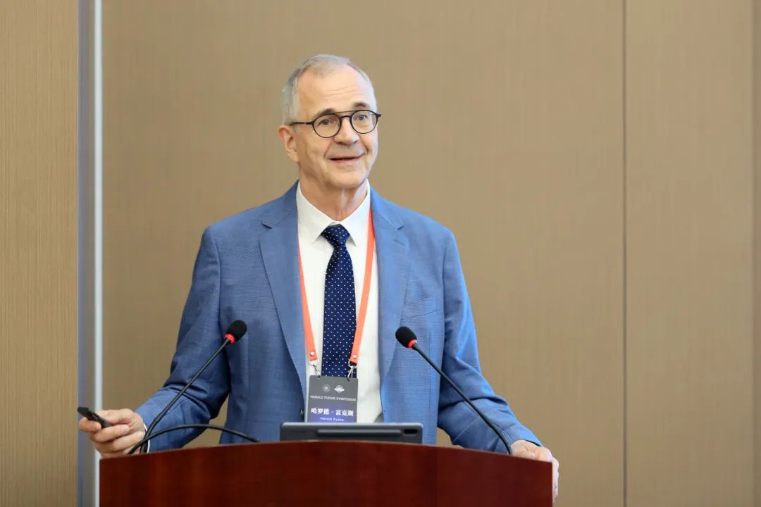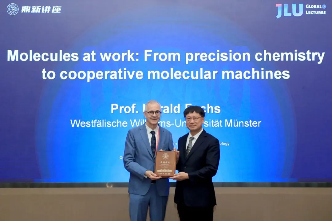 张希在致辞中介绍了哈罗德·富克斯院士与中国合作的历史和进展。他指出,哈罗德·富克斯院士与中国的合作交流始于吉林大学,随后扩展到清华大学、北京大学、中科院化学所、物理所、南京理工大学等中国高校和科研机构。在两校教授间开展密切合作基础上,吉林大学与明斯特大学于2000年签署了校际合作协议。张希高度评价哈罗德·富克斯院士的学术成就,回顾了共同承担中德首个跨学科重大合作项目(SFB,TRR61)长达12年的合作经历和收获,诚挚感谢他为促进中德两国教育科技合作所作的突出贡献。张希勉励现场青年师生,要志存高远、脚踏实地,享受科研的过程,感受科学之美,加强国内外的协作合作,为世界更加美好的未来而共同努力。