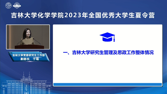 8月19日下午,吉林大学学位办公室主任、研究生院副院长段天璟、研究生招生办公室副主任郝彦辉、党委研究生工作部副部长于瑶、国际合作与交流处副处长田间、学生就业创业指导与服务中心副主任冯彦杰、博士后工作办公室主任高娜、人才工作办公室副主任刘向威及研究生培养办公室杨哲八位校内职能部门负责老师走进夏令营,为营员和线上观众介绍吉林大学在研究生招生、培养、管理、学位授予、国际交流、就业、博士后、人才引育等方面与研究生成长息息相关的特色工作,逐一解答同学们关心的各类问题。直播宣讲环节由四虎影视