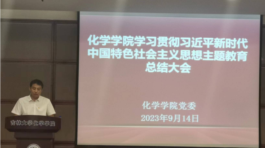 最后,马本华总结发言。他感谢学校第七巡回指导组在主题教育期间对学院悉心的指导和帮助,学院党委将按照学校党委的统一安排,巩固深化主题教育成果,把主题教育实际成效及时转化为担当作为、干事创业的强大动力,坚持以“一流的人才培养质量、一流的师资队伍、一流的科研和社会服务能力、一流的学术声誉和社会影响力”为基本指标,坚持学科内涵式发展。同时,号召学院全体处级领导干部、各党支部及全体党员,以更加昂扬向上的姿态、以饱满的热情,立足本职,砥砺前行,为教育事业贡献更大的力量!为把吉林大学化学学科建设成为世界一流化学学科前列而不懈奋斗!
