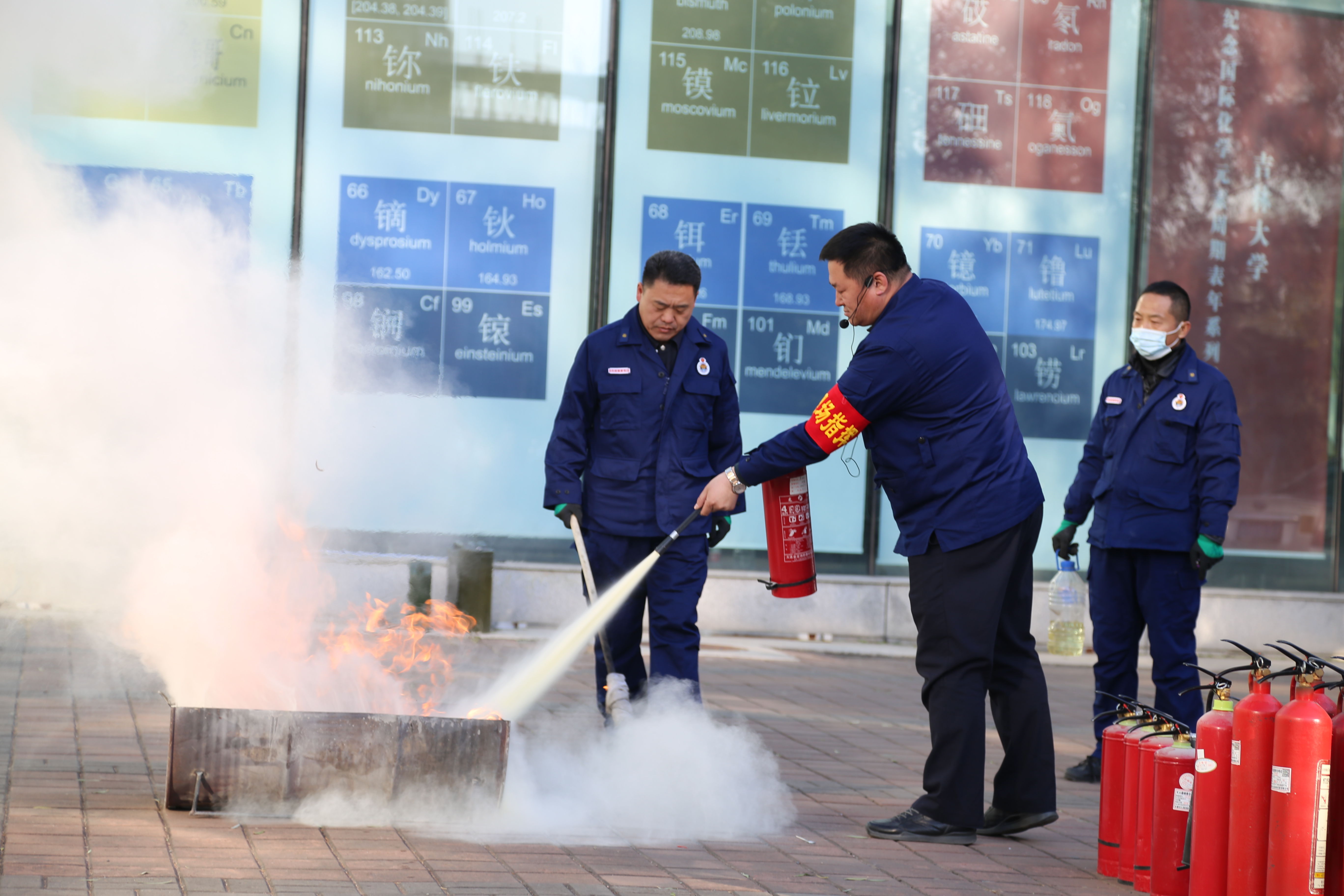 最后,在消防器材实物教学环节,董立明老师详细讲解并演示了干粉灭火器、二氧化碳灭火器、灭火毯等消防器材,20余人次学生在保卫处老师的指导下参与上述消防器材的学习和使用。