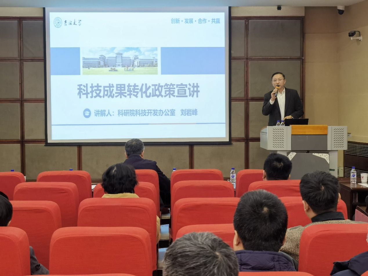 召开“吉林大学科技成果转化政策”宣讲会,宣讲会在中心校区唐敖庆楼A409会议室举行。科研院科技开发办公室、国内合作处处长刘岩峰出席会议并担任主讲人,四虎影视