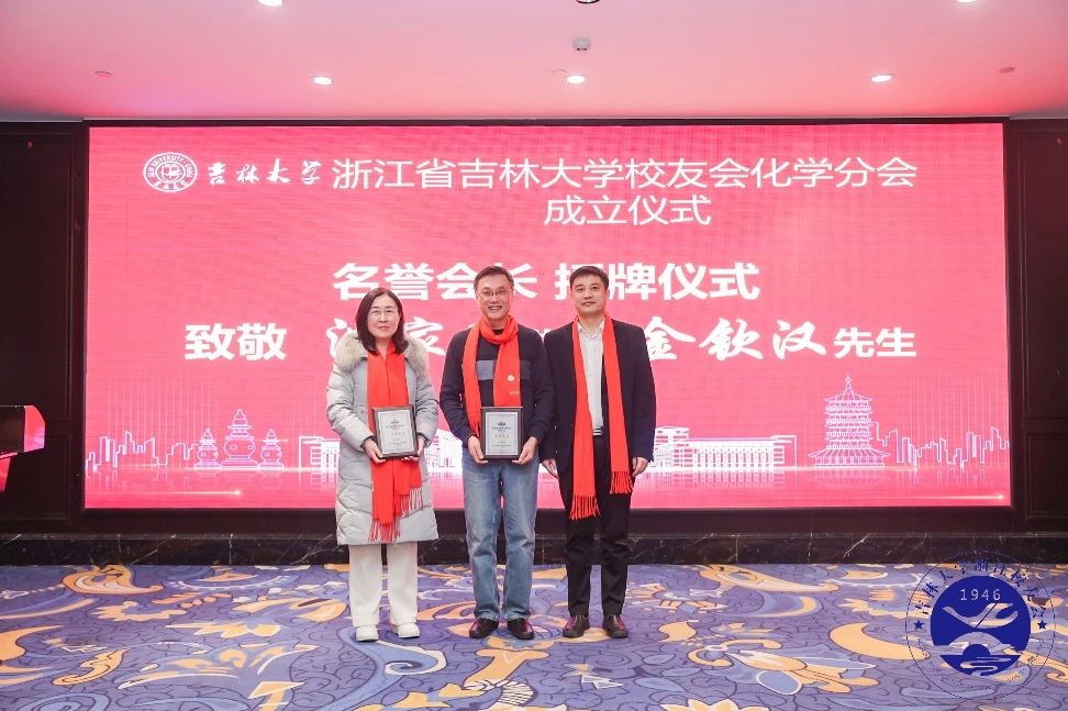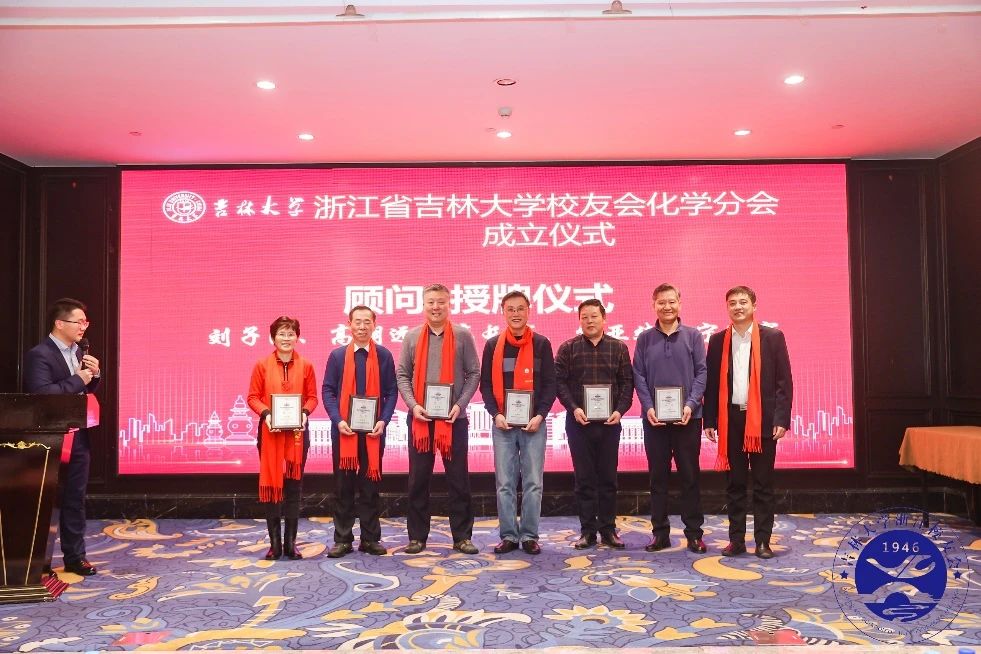 党委书记马本华向浙江省吉林大学校友会化学分会名誉会长沈家骢先生、金钦汉先生颁发聘书(高明远、牟颖代领),并向两位先生致敬,向化学分会顾问宁德宽、刘子阳、高明远、高长有、邵春能、竺亚斌等颁发聘书。四虎影视