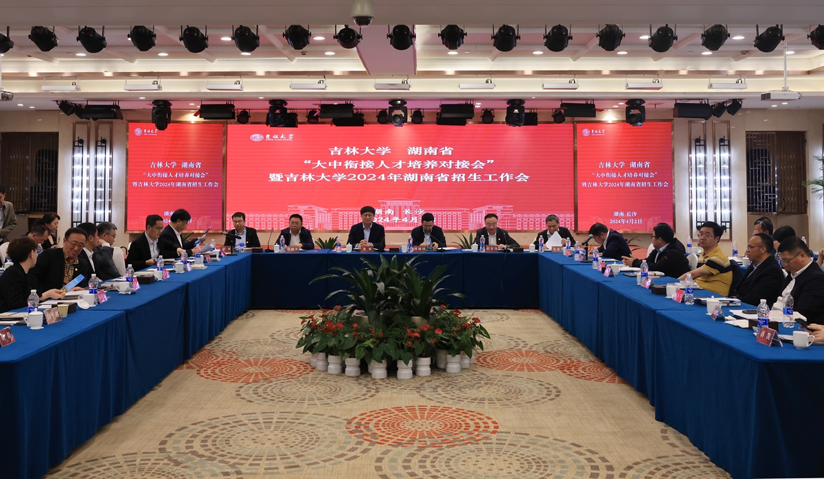 郭建国在致辞中代表全省教育系统、代表全体湖湘学子,对长期以来关心支持湖南教育事业发展、倾心培育湖南学子的吉林大学表示衷心感谢。希望吉林大学能够为湖南学子提供更多机会,让更多的三湘优秀学子成就名校梦想。希望各高中学校为吉林大学提供更多优质生源,把握机会、积极对接、主动请教,积极动员更多更优质的学生报考吉林大学。希望校校携手为湖南培养更多优秀人才,进一步完善新高考背景下拔尖人才选拔培养机制,增强教育教学精准对接,及早发现有创新潜质、禀赋优异的人才,并重点加强生涯规划指导,促进其成长成才,坚持为党育人、为国育才,助力中国式现代化建设,贡献吉林大学和省内优质高中协同育人力量。