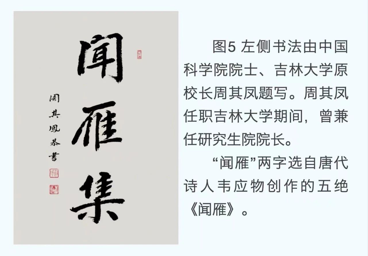 【消息来源:吉林大学微信公众号】五月又至,校园草木初绿,天鹅归落清湖和晏湖,一派生机盎然。天鹅与大雁同属雁形目,并称鸿鹄,是飞得最高的鸟类之一。它们生于北方,丰羽后离巢万里,却总在一定时节回到初生之处。吉林大学的校徽上就有天鹅的形象,寄望学子如鸿鹄般志存高远,常思故园。今年是吉林大学研究生院建院四十周年,看到师生们筹备庆祝活动,我不禁思念起在吉大的求学时光,感怀万千,便想着邀请我的老师、同学和老朋友们,一同著文,追忆往昔,并贺院庆。文章结集成册,命名《闻雁集》,取自唐人旧诗。特请周其凤老校长题字,以期校友们共闻雁鸣,感念母校,常作北归。