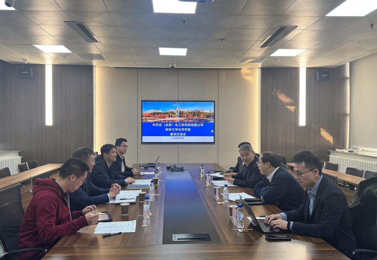 马本华在致辞中对中石化(北京)化工研究院有限公司一行的到来表示热烈欢迎,并全面介绍了学院在学科发展历程、科研平台及人才培养等方面的情况。他表示,吉大化学与石油、石化公司有一定的合作基础,希望未来在科研攻关、成果转化、人才培养等方面可以进一步开展合作。